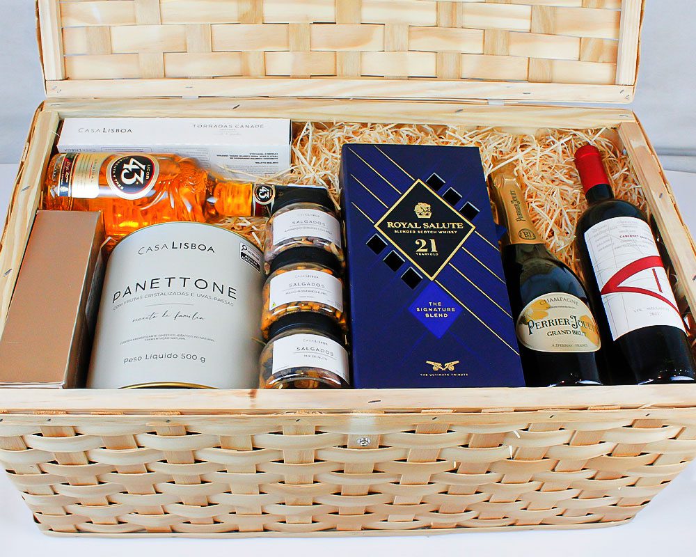 | WHISKY ESCOCÊS CHIVAS ROYAL SALUTE CHAMPAGNE PERRIER JOUET BRUT LICOR ESPANHOL CUARENTA E TRES ESPUMANTE ITALIANO FOSS MARAI SURFINE APERITIVO ITALIANO APEROL APERITIVO LICOROSO FRANCÊS LILLET BLANC VINHO DO PORTO CEREMONY DRY WHITE ÁGUA TÔNICA PREMIUM PRATA (4 UN) COQUETEL COMPOSTO NEGRONI NACIONAL BEG ALUMÍNIO VINHO FRANCÊS LES HAUTS PALTEAUX PROVENCE VINHO FRANCÊS COTES DU RHONE TRADITION VINHO CHILENO MONTES ALPHA PINOT NOIR VINHO CHILENO VIK A VINHO ARGENTINO HERENCIA PARCELAS CHARDONNAY VINHO PORTUGUÊS LUIS PATO BAGA TOURIGA NACIONAL PANETTONE CLÁSSICO CASA LISBOA BOLO DE NATAL NOZES CASA LISBOA CUBOS DE CHOCOTTONE COB C/ CHOCOLATE CASA LISBOA DRAGEE DE CHOCOLATE BRANCO CASA LISBOA DRAGEE DE OREO CASA LISBOA BISCOITO AMANTEIGADO COLOMBIANO NATALINO DUX DOCE DE ABOBORA COM COCO TESOURO REAL GOIBADA CASCÃO CREMOSA TESOURO REAL RISOTO DE FUNGHI NACIONAL HOLYFOODS AZEITE EXTRA VIRGEM TURCO VICENTE SÓ MOLHO PESTO GENOVES DE TOMMASO MASSA ITALIANA TAGLIATELE GRAGANARO QUEIJO GRANA PADANO GRAN MESTRI TORRADAS EXTRA FINA CASA LISBOA SARDELA DE TOMMASO PASTA DE ALCACHOFRA DE TOMMASO CREME DE BRIE POMERODE GALEIA NACIONAL DE PIMENTA VERMONT POTATO CHIPS BLACK TRUFFLE HUNTERS MILHO COM MOSTARDA E MEL CASA LISBOA MIX NUTS SALGADO CASA LISBOA AMENDOIM TORRADO E SALGADO CASA LISBOA CESTA DE LAMINADO DE MADEIRA ARTESANAL |